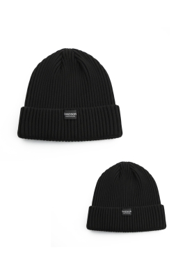 Komplet czapek prążkowanych Tata i Syn czarny