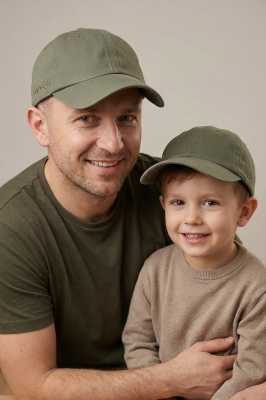 Komplet czapek z daszkiem Tata i Syn khaki